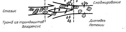 Вариант 2 1) Для какой фазы раневого процесса характерна миграция в рану фибробластов, тучных клеток, рост коллагена, рост кровеносных и лимфатических сосудов? a) I фаза; b) II фаза; c) III фаза; d) -; e) -. 2) Какой фактор будет препятствием для первичного заживления раны? а) первичное склеивание краев раны; b) наличие ровных, гладких краев раны без инфекции; c) наличие инородного тела в ране; d) отсутствие воспаления в ране; e) хорошее кровоснабжение в зоне раны. 3) У пострадавшего рана голени. Выберите неблагоприятное условие для заживления раны первичным натяжением? а) кровотечение из сосудов раны; b) инфицирование раны < 100 000 на 1 г ткани; c) наличие атеросклеротического поражения сосудов нижних конечностей; d) отсутствие инфекции в ране; e) малый размер раны. 4) В ране при гистологическом исследовании выявлено наличие построения сети из эластических волокон и формирование связи между пучками коллагена. Какая фаза раневого процесса? a) I фаза; b) II фаза; c) III фаза; d) -; e) -. 5) Сколько зон повреждения формируется при огнестрельном ранении? a) 1 зона; b) 2 зоны; c) 3 зоны; d) 4 зоны; e) 5 зон. 6) У пострадавшего рана плеча после удара тупым предметом с некрозом кожи, гематомой под некрозом, выраженной болью. Какая рана у пострадавшего? a) колотая; b) резаная; c) огнестрельная; d) укушенная; e) ушибленная. 7) Для какой фазы раневого процесса характерны изменения микроциркуляторного русла показанные на рисунке?