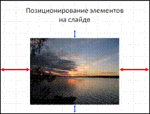 Желательно, чтобы изображение было не столько фоном, сколько иллюстрацией, равной по смыслу самому тексту, чтобы помочь по-новому его понять и раскрыть. Одновременно надо продумать и фон рисунка, чтобы он подчеркивал все его детали. Пояснительная надпись преимущественно должна располагаться под рисунком. Равномерно и рационально использовать пространство на слайде. Мы предлагаем соблюдать следующие правила: - перед размещением на слайд каких-либо объектов для создания четкой композиции, правильного взаимного расположения объектов и соблюдения пропорций нужно устанавливать на слайде сетку и направляющие линий (Вид → Сетка и направляющие); - учитывать границы расположения объектов на слайде (рис. 11 а - в).