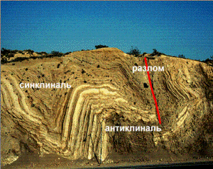 В этом случае синклинальные складки принято называть мульдами (брахисинклиналь), а антиклинальные — куполами (брахиантиклиналь) Рис. 11.5.12.Вид линейной антиклинальной складки и