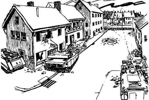В городской застройке преобладают дома, имеющие на горизонтальном плане форму удлиненного прямоугольника. Тактический перевес штурмующих основывается на том, что в торцевых частях этого прямоугольника количество окон, потенциальных огневых точек, будет намного меньше, чем на его фронтальных сторонах. Рубежи выдвижения штурмовых групп находятся с торцов здания.