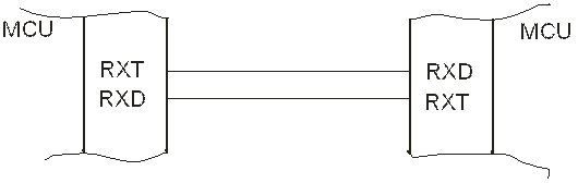 Рис. 3.3 содержит пример соединения двух микроконтроллеров в пределах одного устройства с помощью встроенного UART в асинхронном полнодуплексном режиме. Выход передатчика одного порта соединен со входом приемника другого устройства и наоборот, вследствие чего данные могут передаваться в обоих направлениях независимо.