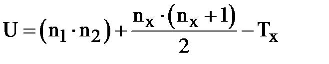2. Найдем сумму рангов двух выборок и выберем большую из них: 3. Рассчитаем эмпирическое значение критерия по формуле: 4. Определим критическое значение критерия при уровне значимости p≤0,05 U0,05=19 Вывод: так как расчетное значение критерия
