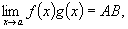 Теорема 3. Предел произведения двух функций равен произведению их пределов: