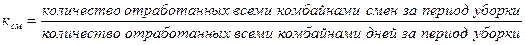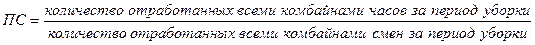 где ксм – коэффициент сменности; ПС – средняя продолжительность смены, ч; ЧВ – среднечасовая выработка на один комбайн, га; ДП – величина целодневных простоев на один комбайн, дней. Показатели Д, S и К нам заданы (см. таблицу 1); остальные факторы из модели (1) определяются по следующим формулам: