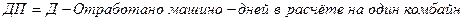 В формуле (5) количество машино-дней в расчёте на один комбайн определяется путём деления отработанных за период уборки всеми комбайнами дней на среднесезонное количество комбайнов (К). Составим таблицу 1 показателей работы зерноуборочных комбайнов, на основе данных которой будем далее рассчитывать влияние факторов на изменение продолжительности уборки зерновых культур. Часть показателей берётся из таблицы 1, а часть – рассчитывается по формулам (2)-(5). Таблица 1 – Показатели работы зерноуборочных комбайнов