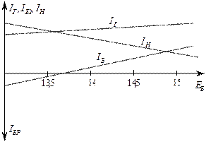 По результатам расчетов построить графики изменения токов генератора батареи и нагрузки от ЭДС батареи , увеличивающийся в процессе подзарядки (рис 10)
