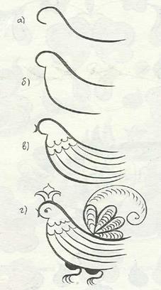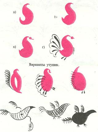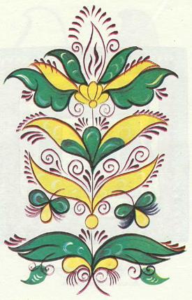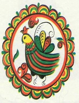 Зародилась мезенская роспись в селе Палощелье, на реке Мезени. Там издавна изготовлялись всевозможные предметы из дерева и обязательно расписывались. Роспись скупа в выразительных средствах, лаконична в рисунке. В ней нет элементов цветочного орнамента. Изделия расписывались летом перед ярмаркой. В мезенской росписи всего два цвета: красный и черный. Красноватую охру добывали из береговой глины, черную делали из сажи. Чтобы краска долго не тускнела и не выгорала, изделие покрывали олифой, что придавало росписи красивый золотистый отлив. Роспись на прялке всегда имела строгий порядок. По небольшой стройной, срезанной по нижним углам лопастки прялки, украшенной наверху маковками, словно главками северной церкви, располагались три яруса. Они, по всей вероятности, соответствовали трем мирам: небесному, наземному и подземному. В верхнем ярусе рисовались птицы и «бердо», в среднем – кони, олени, в нижнем – кони и птицы. В глубокой древности кони и олени символизировали солнце – небесный огонь, дающий людям тепло и свет. Бег животных – это движение светила по небосводу. Заштрихованные треугольники, квадраты и ромбы с точками – символы пашни, засеянного поля. И лишь с обратной стороны, там, где привязывалась кудель, мастер мог позволить разгуляться фантазии – тут размещались сцены охоты, рыбной ловли, катания на санях. Данный промысел и сейчас продолжают потомки знаменитых мастеров (рис. 31-33).