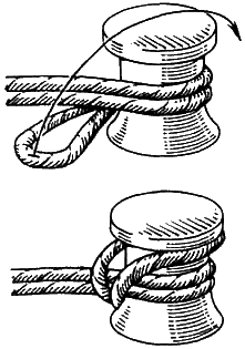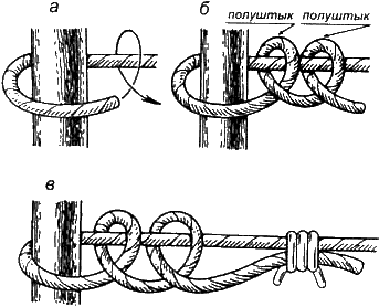 Узел «рыбацкий штык» (а) (!) — незаменим для крепления троса к якорю. Узел «простой штык со шлагом» (б) (!) — используется при швартовке судна к причалу; — применяется для крепления троса к крюкам (гакам), кольцам, петлям (огонам). Узел «штык с обносом» (в) (!) — при маятниковых нагрузках никогда не скользит вдоль предмета, вокруг которого завязан.