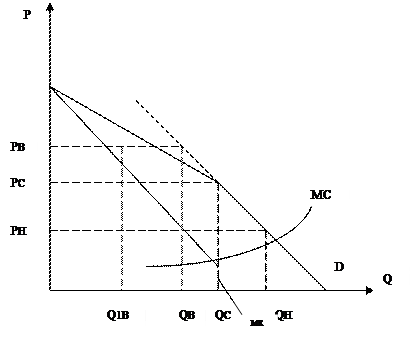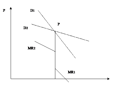 Рисунок 3.4 – Ценообразование за лидером на рынке гомогенного блага предельной выручки и предельных затрат лидера определяет цену Р1, которая установится на данном рынке.