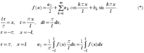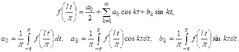 Тогда, если –l < x < l, то -π < x < π. Функцию f (l∙t/π) разложим в ряд Фурье в интервале