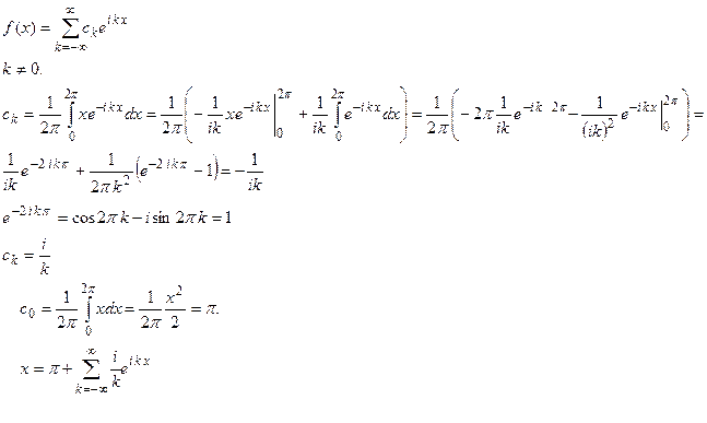 Для нахождения коэффициентов умножим ряд (2) на e – i k x и проинтегрируем от –π до π.