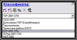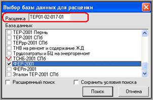 Рис. 1.6.10. Выбор базы данных в классификаторе 5. На закладке «Расценки» (рис. 1.6.11) найдите по шифру или наименованию нужную расценку, для этого в поле «Расценки» в ячейку «Текст» впишите искомую информацию и выберите параметр поиска, установив опцию напротив нужного («По шифру» или «По наименованию»). Далее нажмите кнопку «Показать» на закладке «Результаты поиска» отобразятся все найденные по введенной информации расценки. Используя полосу прокрутки найдите искомую расценку, при этом наименование выделенной