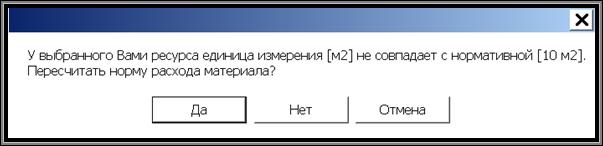 Рис. 1.6.16. Пересчитать норму расхода материала? Если возникает необходимость пересчета нормы расхода, нажмите кнопку «Да». Откроется окно (рис. 1.6.17.):