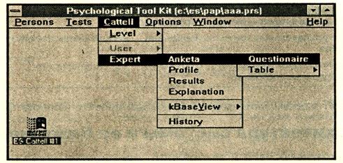 Здесь базовыми, обслуживающими все локальные ЭС, «задействованные» в общей системе, являются опции База и Тесты. Первая из них обеспечивает формирование и сопровождение баз данных и знаний испытуемых, а вторая - вызов локальных экспертных систем. Экранная форма основного цикла работы БЭС «Ориентир» представлена на рис. 7.3.