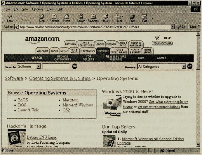 <html> <head> <title> Amazon.com: Electronics/Software/Operating Systems </title> </head> …. <body... > <table.. > <tr> <td colspan=2 bgcolor = #EEEECC> <font... >Browse <B>Operating Systems</B></font> </td> </tr> <tr> <td bgcolor ="FFFFFF" valign = "top" width=50%> <ul> <li><a href = /exec/obidos/tg/electronics/...> DOS</a> <li><a href=/exec/obidos/tg/electronics/...> Linux & Unix</a> <li><a href=/exec/obidos/tg/electronics/...> Macintosh</a> </ul> </td> <td valign="top" width=50%> <ul> <li><a href=/exec/obidos/tg/electronics...> Microsoft Windows</a>