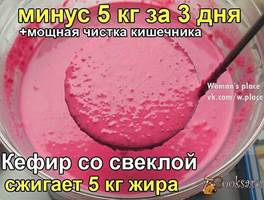 В оригинале нужно в день выпить 1-1,5 литра кефира, съесть 1 кг вареной свеклы и выпить 1,5 литра минеральной воды. В первый день я сделала все именно так: сварила свеклу, нарезала ее кусочками и ела, запивая кефиром. Гадость еще та) Я сразу поняла что не выдержу это издевательство над собой целых три дня и немного ее улучшила. Вареную свеклу я перемолола в блендере вместе с кефиром и получился чудесный и вкусный коктейль, который я с удовольствием пила три дня, не забывая о минералке, которую без ущерба для диеты позже заменяла обычной питьевой водой. Точного количества продуктов тоже не придерживалась. Результат был удивительным и превзошел все ожидания, даже несмотря на парочку печенья, которыми угостила соседка,5 кг ушло с легкостью. Позже я советовала эту разгрузку уже всем своим знакомым и всем она помогла в разной мере, но эта мера всегда радовала. Она отлично помогает, когда вес останавливается, и ничто не может его сдвинуть. Попробуйте - не пожалеете! Боль с суставов снимет горчица. Снять боль и дискомфорт в суставах помогает такой простой рецепт растирания. Взять 50 г камфары, 50 г порошка горчицы, 50 мл спирта и 3 яичных белка. Растворить в спирте камфару, затем горчицу, в отдельной посуде взбить белок, который предварительно лучше охладить — так он легче взбивается. Смешать оба состава и полученную мазь хранить в холодильнике. Втирать ее перед сном в больные суставы, затем сверху завязать шерстяным платком на всю ночь. Уже после первой процедуры почувствуюте значительное облечение, для полного снятия болей обычно требуется 8-10 таких растираний.