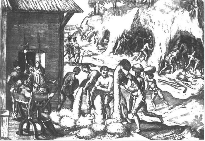 Добыча золота на американских копях. Художник Т. Де Бри