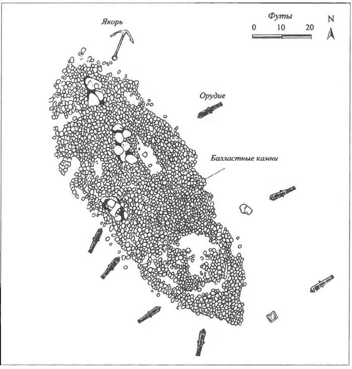 План расположения обломков галеона «Сан Педро», затонувшего в 1733 г.
