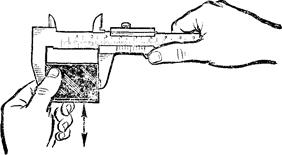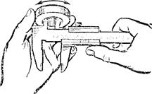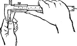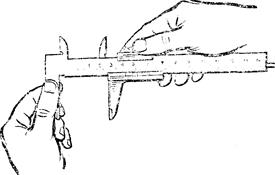 При измерении незакрепленной детали левая рука должна находиться за губками и захватывать деталь недалеко от губок; правой рукой поддерживают штангу, при этом большим пальцем этой руки перемещают рамку до соприкосновения с проверяемой поверхностью, не допуская перекоса губок и добиваясь нормального измерительного усилия.