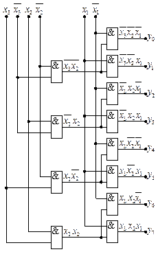 Такий дешифратор називається лінійним (одноступінчатим). Для того, щоб реалізувати дешифратор на елементах