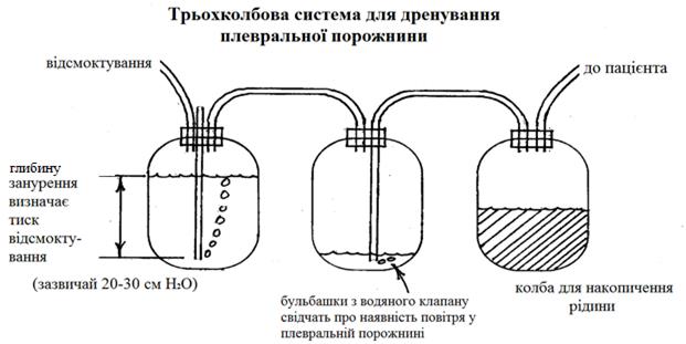 Майже усі пристрої для відсмоктування грудної клітини використовують принцип трьохколбової системи. В усіх пацієнтів з травмою грудної клітки з гіпотонією в анамнезі перед введенням дренажу в грудну порожнину прикріпіть пристрій автотрансфузії до дренажної системи грудної порожнини.
