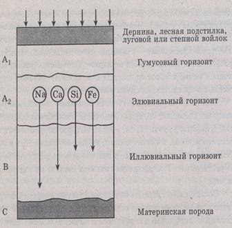 В — иллювиальный или переходный горизонты формируются в средней и нижней частях профиля — под элювиальным или гумусовым горизонтом. В него вмываются и частично накапливаются различные вещества, вымываемые из вышележащих горизонтов. Он обогащен по илом, полуторными окислами и другими относительно подвижными минералами, органо-минеральными или органическими веществами.