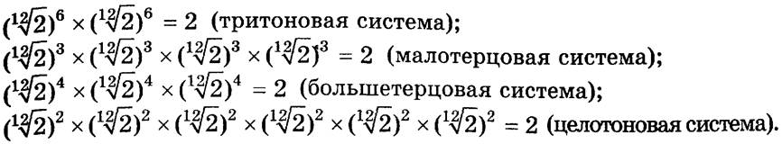 Благодаря одновременно сближению отдаленных точек системы (прежде всего через терцовые связи) симметрия отношений на основе энгармонического тождества все более усиливается и превращается в самостоятельный аспект внутренней ладовой структуры. Вслед за симметрией тритонового энгармонизма («первой энгармонической симметрией») автономизируются и ответвляются от тонально-функциональных (то есть квинтовых) связей отношения малотерцовой, большетерцовой, целотоновой симметрии (как и по отношению к тритону — см. примеры 96 и 97 — под симметрией подразумевается периодически повторяющаяся группа интервальных отношений). Энгармонизм приравнивает диатонический и хроматический типы полутона, условно передавая совмещение свойств того и другого темперированным полутоном 12 √ 2· Тем самым открывается новая возможность соотношений интервалов, где критерием простоты и сложности является возможность энгармонического унисона. С этих позиций первым и простейшим отношением будет равенство, происходящее от деления октавы на простейшее число 2, то есть 12: 2. Далее следуют деления 12:4, 12:3,12:6(12:4 находится на втором месте потому, что 4 есть комбинация 2 ∙ 2, без привлечения более сложного числа 3, так же как двойная октава 2 · 2 будет проще, чем квинта 3: 2). В точных числах: