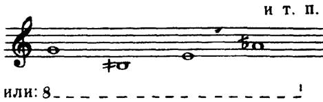 Проблема микрохроматики обладает удивительной двойственностью. С одной стороны, микроинтервалы — четвертитоны, трететоны, шестинатоны* и другие, а также их комбинации, производные интервалы (2/3, 3/8 тона и т. п.) — широко применялись в древности, В русском языке есть еще не исчезнувшие суффиксы, обозначающие части целого, что удобно для терминологии микрохроматики: 1/2 — половина, 1/4 — четвертина, 1/8 — осьмина (восьмина), 1/10 — десятина. Отсюда 1/5 тона — пятина-тон, 1/6 — шестинатон, 1/8 — восьминатон, 1/12 — двенадцатинатон. широко распространены на Востоке (индийские шрути*, микротоны в арабской музыке и т. п.) и все более распространяются в европейской и неевропейской музыке нашего времени. С другой стороны, интонирование микротонов крайне трудно. Современный слух (отставший от слуха древних**) не в состоянии трактовать даже четвертитоны как ступеневые величины. Под ступенью мы подразумеваем звено высотной градации наподобие лестницы (скалы, гаммы, «лествицы»):