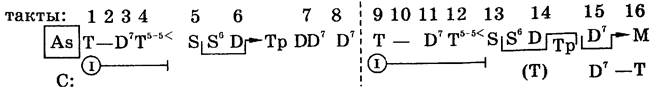 Приведем гармоническую схему начального периода этого этюда, представляющую тонально-функциональные отношения:
