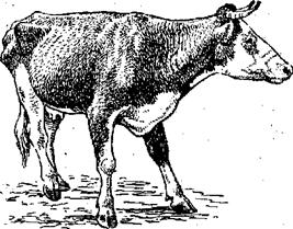 Рис.Атрофия мускулатуры бедра и крупа при параличе. сустав выпадает, в то время как функция сгибателей пальца происходит пассивно благодаря заложенным в них сухожильным волокнам. Передвижение животного при параличе большеберцового нерва невозможно. В скором времени развивается атрофия парализованных мускулов и асимметрия бедра и крупа. Диагноз. Диагностируется паралич этого нерва по клиническим признакам. Прогноз. Осторожный. Лечение. То же, что и при параличе предлопаточного нерва.