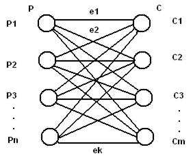 Р – производители некоторой продукции; С – потребители продукции; е1, е2,…,ек – маршруты; к = m*n Есть некий заказ Р, который состоит из подзаказов р1, р2, …, р3 и объема продукции, которую необходимо потребить. Р = ∑рi (i = 1,…,n) C = ∑cj (j = 1,…,m) P = C Ограничения: Каждый маршрут имеет свой вес, свои затраты Se1,…,Sek и ограничения на пропускную способность. Se1d1,…,Sekdk Необходимо найти маршруты от производителей к потребителям, чтобы ∑Sel → min (e = 1,…,k) Алгоритм Форда-Фолкерсона. 3. Задача о назначении (задача коммивояжера). Есть несколько городов и дороги между ними. Найти маршрут коммивояжера, чтобы он посетил каждый город только 1 раз.
