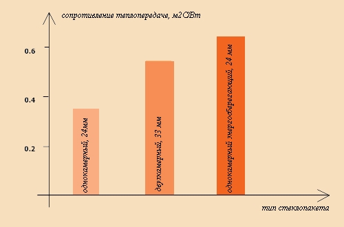 Рисунок 7.1.2 – Зависимость сопротивления теплопередачи от типа стеклопакета