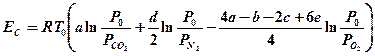 Уравнение (4-9) получено в приближении идеальных растворов. Так как в СТМОС (см. раздел 5) концентрационная эксергия Н2SO4×115Н2О равна нулю, то концентрационная эксергия ЕC (СaН bОcNdSe) равна