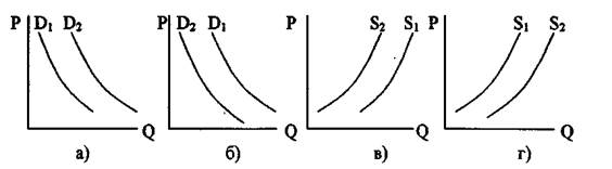 7.Витрати підприємця на придбання сировини – 20 тис. гр. од., на амортизацію машин – 40 тис. гр. од., на заробітну плату – 30 тис. гр. од., інші витрати 10 тис. гр. од. Виручка від реалізації товару – 120 тис. гр. од. Розрахуйте балансовий прибуток фірми. 8. На якому графіку правильно відображені зміни, які викликаються наступними подіями: 1. Підвищилася мода на товар. 2. Знизилися ціни на сировину, з якої виготовляється товар.