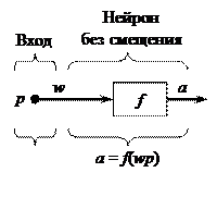 Рис. 1.1. Структурная схема нейрона с одним скалярным входом Здесь скалярный входной сигнал (вход) Нейрон, представленный на рис. 3.1, б, дополнен скалярным смещением Выходной сигнал
