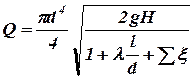 Прямое вычисление расхода здесь выполнить невозможно, так как коэффициенты l и x являются функциями числа Рейнольдса, а оно оказывается неопределимым в условиях данной задачи потому, что само связано с неизвестным и искомым расходом Q. Поэтому решение производят методом последовательных приближений, полагая в первом приближении, что имеет место квадратичный закон сопротивлений, при котором коэффициенты l и x не зависят от Re. Метод В. Расчет ведется с использованием уравнения (2):