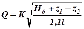 Расходная характеристика определяется по таблицам в соответствии с заданным диаметром. Располагаемый напор Н определяется из соотношения (3): Н = Нб + z1 – z2. Расход с учетом 10% запаса на местные потери будет: