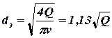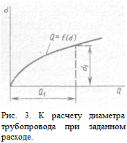 Задаваясь при постоянном напоре Н рядом значений диаметра d1, d2, d3 и т. д., можно вычислить ряд соответствующих значений расхода Q1, Q2, Q3 и т. д. и построить график Q = f(d) (рис. 3). По графику можно определить диаметр трубопровода, отвечающий заданному расходу Q. Метод В. Имея в виду, что Вычисляем по формуле