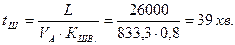 де L – віддаль від бетонного заводу до місця вкладання бетонної суміші (L = 26000 м); Vа – розрахункова середня швидкість автомашини, яка приймається за додатком 27 [5] (оскільки ми будемо перевозити бетонну суміш по шляху з асфальтобетонним покриттям і ухилом 0,04 то Vа =50 км./год., або Vа = 833,3 м/хв.); Кшв – коефіцієнт, який враховує випадкові затримки транспортних засобів в дорозі (приймаємо Кшв = 0,8) [5]. Тоді тривалість рейсу автомашини з вантажем дорівнює: