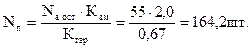 де Кзм – коефіцієнт, який враховує змінність роботи автотранспорту (в нашому випадку передбачається тризмінна робота бетонного заводу, а отже і тризмінна робота автотранспорту, тому Кзм = 2,0); Nа.ост – остаточно прийнята кількість автомашин (Nа.ост = 55 машин); Кгар – коефіцієнт, який враховує можливість щоденного виходу автотранспортних засобів з парку-гаражу, де частина їх знаходиться на поточному ремонті, технічному обслуговуванні (приймаємо Кгар = 0,67).