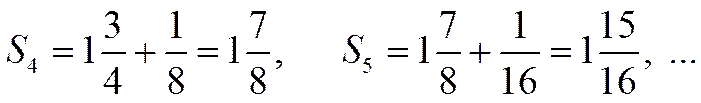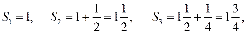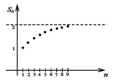 Видно, что последовательность частичных сумм стремится к числу 2 (рис.1.4.1). А теперь докажем это. Воспользуемся тем, что данный ряд - это ряд, составленный из членов геометрической прогрессии, где