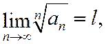 Теорема (радикальный признак Коши) Если для ряда (1.39) c неотрицательными членами существует конечный предел при l < 1 ряд сходится, при l > 1 ряд расходится; при l =1 ряд может оказаться как сходящимся, так и расходящимся, т.е. признак неприменим. Доказательство аналогично доказательству теоремы Д'Аламбера.