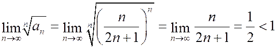 Замечание. Радикальный признак Коши эффективен, если общий член ряда имеет вид Пример. Исследовать сходимость ряда