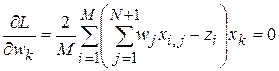Удобство линейных решающих функций в том, что для их нахождения используется линейный МНК, имеющий эффективное решение. Для определения значений параметров, при которых достигается минимум критерия (14), продифференцируем его и получим систему линейных уравнений: