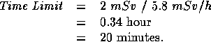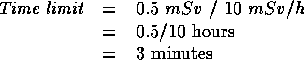 In addition, access to radiation areas can be controlled, and areas routinely surveyed and sign-posted to identify areas where higher than normal fields exist. Radiation exposure can be controlled by limiting the length of time a person spends in a radiation area. If the radiation dose rate is known and a person wishes to limit the dose they receive, the maximum length of time that they can spend in the area is calculated as follows: