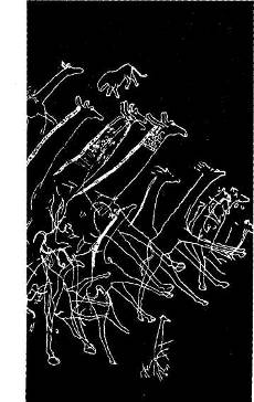 Площадь этого наскального рисунка 120 кв. м, высота жирафов до 8,5 м. Чтобы нарисовать это, древние охотники Сахары должны были построить этого сохранились в виде маленьких женских статуэток, которые во множестве делали охот-ники. Во-вторых, конечно, об охоте и всем, что с ней связано. А в-третьих, или хотя бы в-десятых о странном поведении луны. У одних получалось' что лунный месяц содержит 28 дней, четыре раза по семь, а у других — 29. Расхождение в сутки приводило к нестыковкам. В солнечный год укладывалось 12 лунных месяцев, но как-то неточно. Гигантское каменное сооружение Стоунхендж в Англии построено охотниками много тысячелетий назад. Сейчас доказано, что сооружение может работать как солнечно-лунная обсерватория с каменной счетной машиной. Ее назначение — проверить предположение о том, что через 56 лет начало года по солнечному и лунному календарям опять совпадет. Никто из задумавших этот эксперимент охотников не мог надеяться дожить до его окончания. Продолжение наблюдений приходилось завещать детям, а те должны были завещать своим детям. И вот что поразительно: на Земле не одна такая обсерватория, их делали и в других местах. А дети охотников росли смышленые, потому что ели мясо в достаточном количестве. И послушные, потому что хотели попасть в бригаду охотников, а это было не просто, туда брали не всех. Так что 56-летний цикл они наверняка проследили. Дети и теперь приходят в восторг, начинают радостно кричать и прыгать при приближении к ним группы вооруженных мужчин, к примеру солдат. Это тот же восторг, с которым встречали возвращающихся с охоты мужчин. После всего сказанного как вы теперь отнесетесь к философам, утверждавшим, что у охотников был матриархат. Ледник начал стремительно таять 10 тыс. лет назад. Обширная и богатая пищей тундростепь распалась на полоску негостеприимной тундры и ленту степей, а между ними вклинились, быстро расширяя свои владения, леса. Для северных охотников это был крах. Южные охотники в степях продержались еще несколько тысяч лет. Прорвавшись в Африку, они успели лихо поохотиться на тамошних животных в саванне, покрывавшей теперешнюю Сахару. Но перепромысел — «бич божий» загонных охот — настигал их повсюду. Когда кончились крупные звери, кончились и Великие Охотники Больших Загонов. Сменившие их полусобиратели-полуохотники и немножко земледельцы усвоили лишь часть достижений предшественников, создавших, как теперь выясняется, начала счета, геометрии, астрономии, календарь, каменное, земляное и деревянное строительство, украшения и многое другое. Вокруг непонятных сооружений охотников, сложенных из таких каменных глыб, что и вдесятером с места не сдвинешь, новое население создало легенды про живших когда-то на Земле великанов. И еще от них остались фрески — от маленьких в тесных пещерах до гигантских многоцветных полотен на скалах в Северной Африке. Рисовать и ваять впервые в истории человечества начали тоже охотники. Первым их произведениям искусства около 30 тыс. лет. И как рисовали! Какая грация в движениях животных, какая точность в передаче изображенного всего лишь немногими линиями и в то же время сколько экспрессии и абстракции! Рисовать животных лучше них просто невозможно. Когда 500 лет назад благочестивый Христофор Колумб пересек Атлантический океан и встретил далеких братьев по р
