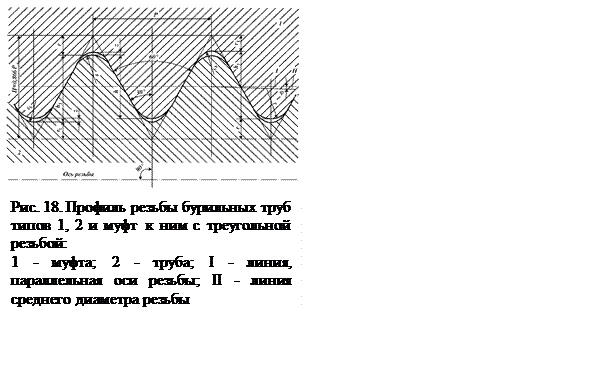 Размеры профиля резьбы труб типов 1, 2 и муфт к ним (рис. 18) приведены ниже.