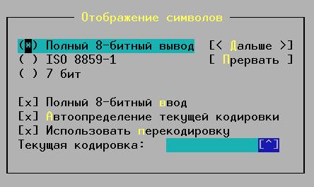 Если терминал поддерживает только 7-битный вывод, то нужно выбрать установку 7 бит. Выбрав "ISO-8859-1" вы получите все символы из таблицы ISO-8859-1, а выбор установки Полный 8-битный вывод имеет смысл на тех терминалах, которые могут отображать все 8-битовые символы. Чтобы при просмотре или редактировании файлов в Midnight Commander видеть на экране кириллицу, установите опции Полный 8-битный вывод и Полный 8-битный ввод (как на рис. 6. 9) и нажмите экранную кнопку Дальше.