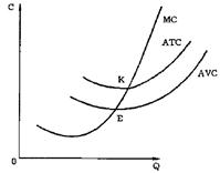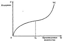 Предельные издержки (МС) - это издержки, связанные с выпуском дополнительной единицы продукции. Предельные издержки равны изменению общих издержек, деленному на изменение объема произведенной продукции, т. е. они отражают изменение издержек в зависимости от количества выпускаемой продукции. Поскольку постоянные издержки не меняются, то постоянные предельные издержки всегда равны нулю, т. е. MFC = 0. Поэтому предельные издержки - это всегда предельные переменные издержки, т. е. MVC = МС. Из этого следует, что увеличивающаяся отдача переменных факторов сокращает предельные издержки, а понижающаяся отдача - наоборот, их увеличивает. Предельные издержки показывают, какова величина затрат, которые фирма понесет при росте производства на последнюю единицу продукции, или тех средств, которые она сэкономит в случае уменьшения производства на данную единицу. В том случае, когда дополнительные издержки на производство каждой дополнительной единицы продукции меньше средних издержек уже произведенных единиц, производство данной следующей единицы понизит средние общие издержки. Если же издержки на следующую дополнительную единицу будут выше, чем средние издержки, ее производство повысит средние общие издержки. Изложенное относится к короткому периоду. Кривая предельных издержек пересекает кривую средних переменных издержек и кривую совокупных издержек в точках их минимального значение (см. рис. 7).