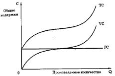 Общие издержки (ТС) - совокупные издержки фирмы, равные сумме ее постоянных и переменных издержек, определяются по формуле: ТС = FC + VC. Графически это означает суммирование кривых постоянных и переменных издержек (см. рис. 3).